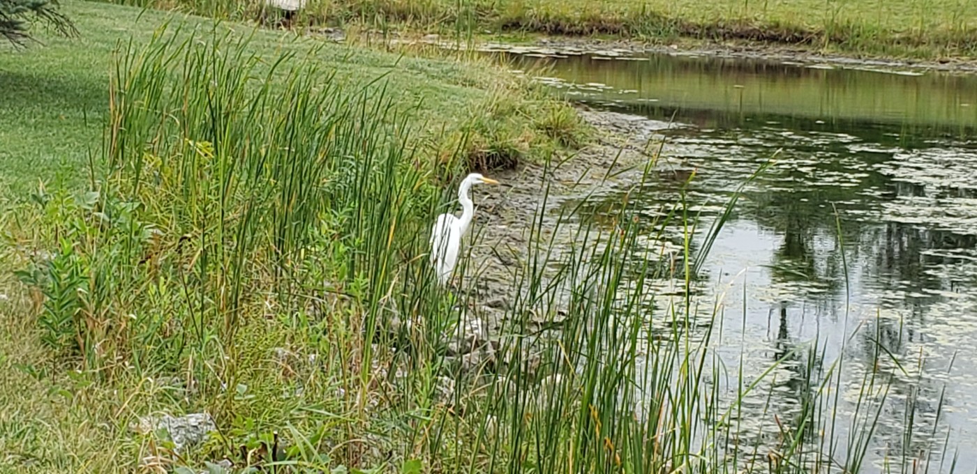 A wild turkey hen comes by every summer with her big chicks. Sometimes we even see the magnificent waddling beast of the male turkey. A mated pair of mallard ducks swims in the canal behind the house. Sandhill cranes in a small flock tour the neighborhood in summer with long-legged grace, and in the pond across the street, I’ve seen blue heron and a snowy egret.